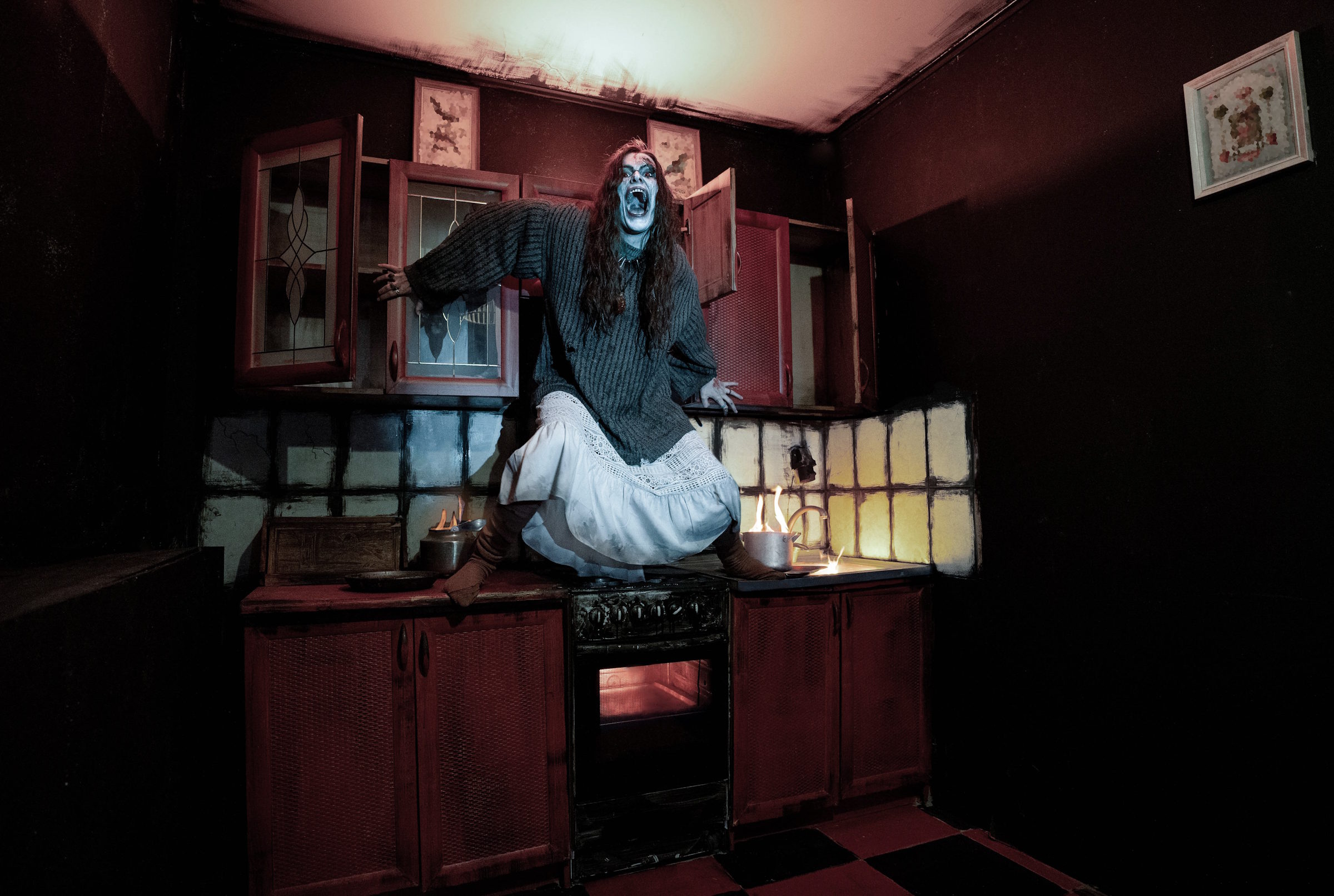 Бутафория/антураж. Нелегко обустроить 400 квадратов как полноценную обжитую картинку, целостный дом и как канон всех известных мистических фильмов. Но здесь у ребят получилось на «ура». Наполненный, качественный и масштабный антураж, детализированный состариванием, антикварными вещицами и ОГРОМНЫМ количеством всех стандартных для обычного дома зон: коридоры, кухня, спальни и пр. Видно, что в этот ДОМ вложили душу, сердце и много-много денег)) Мое уважение!